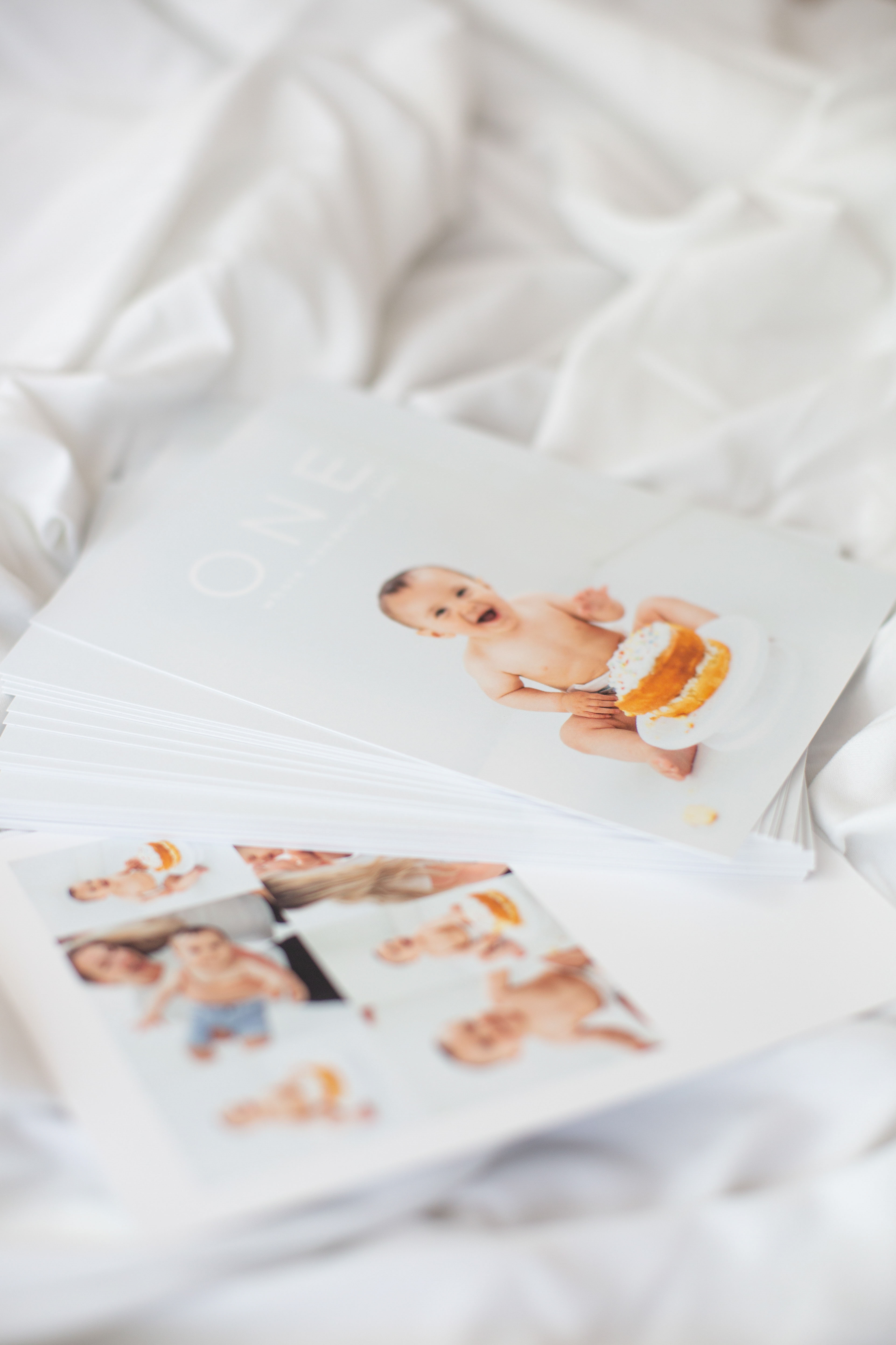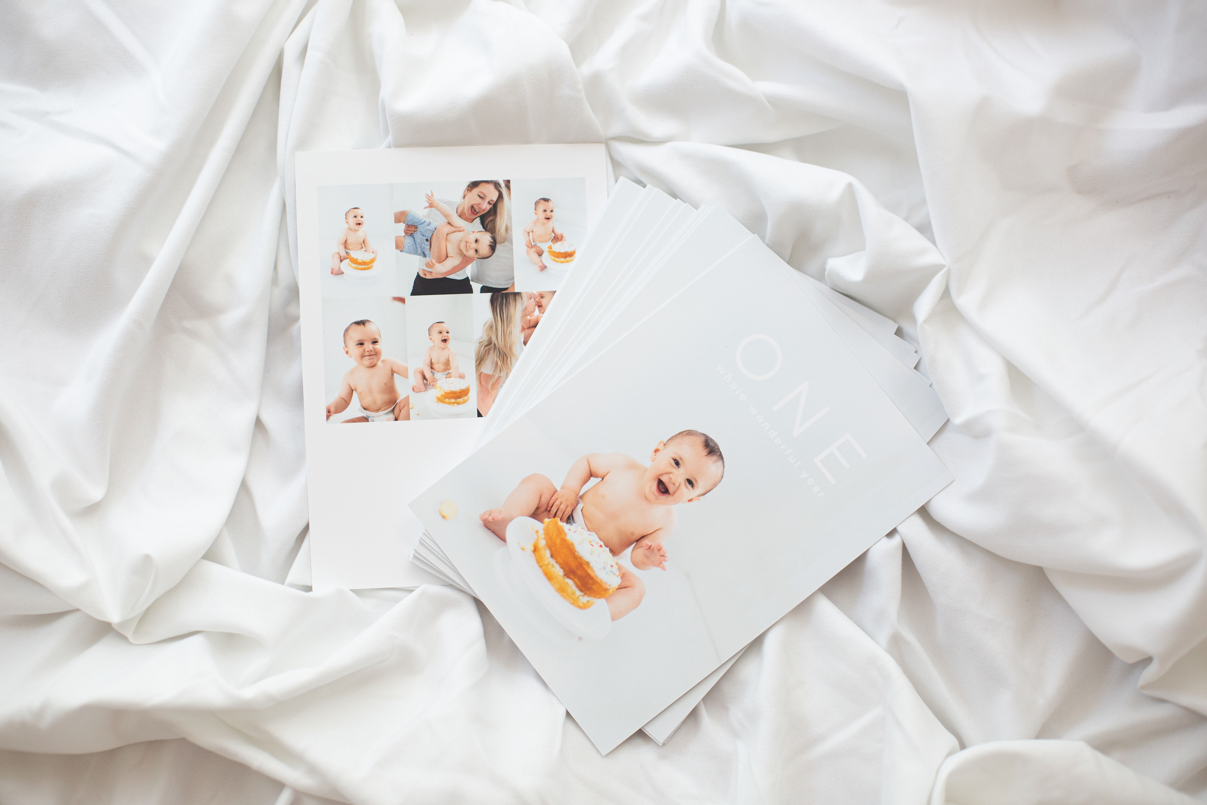 We used some of these beautiful photos for the first birthday thank you cards.