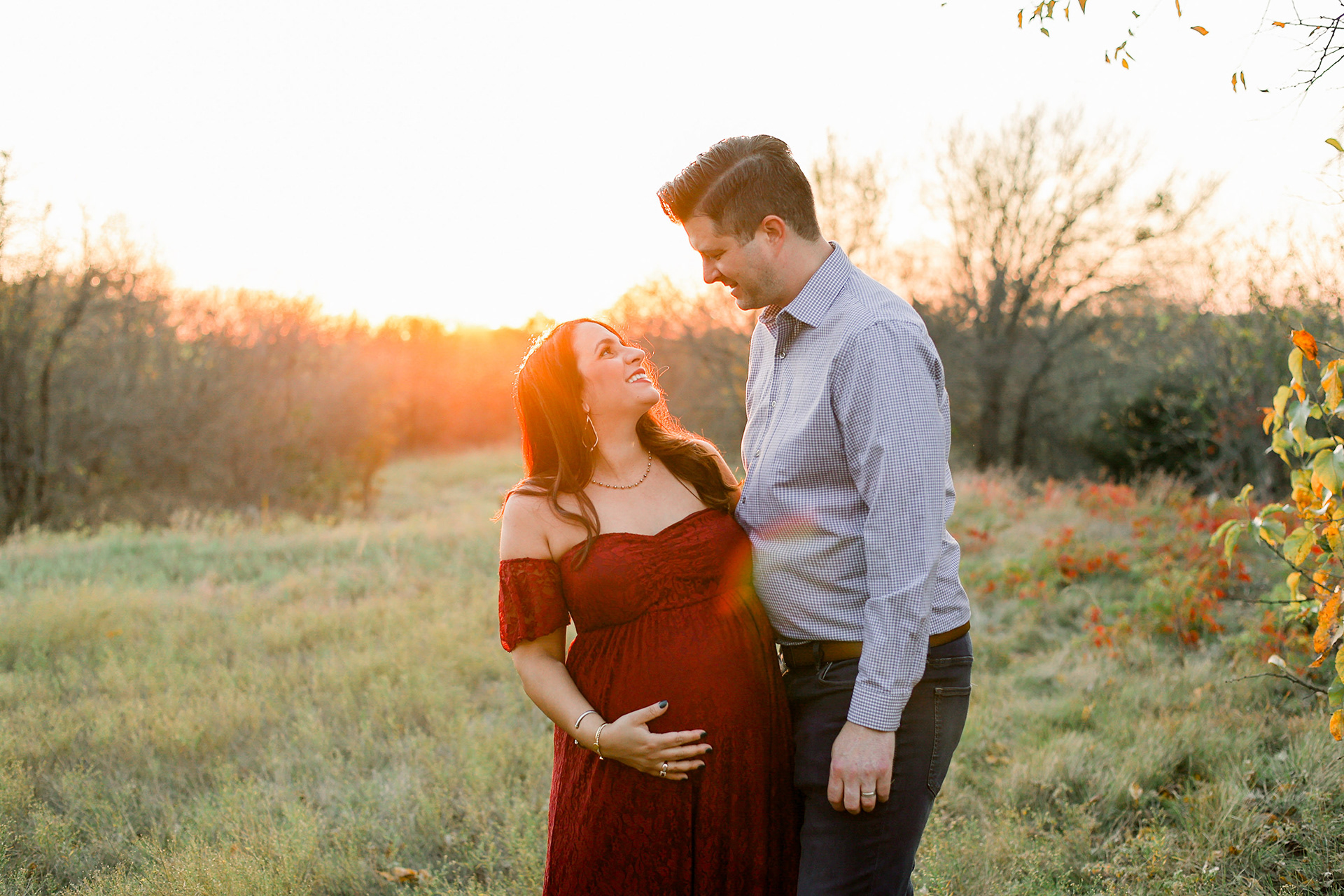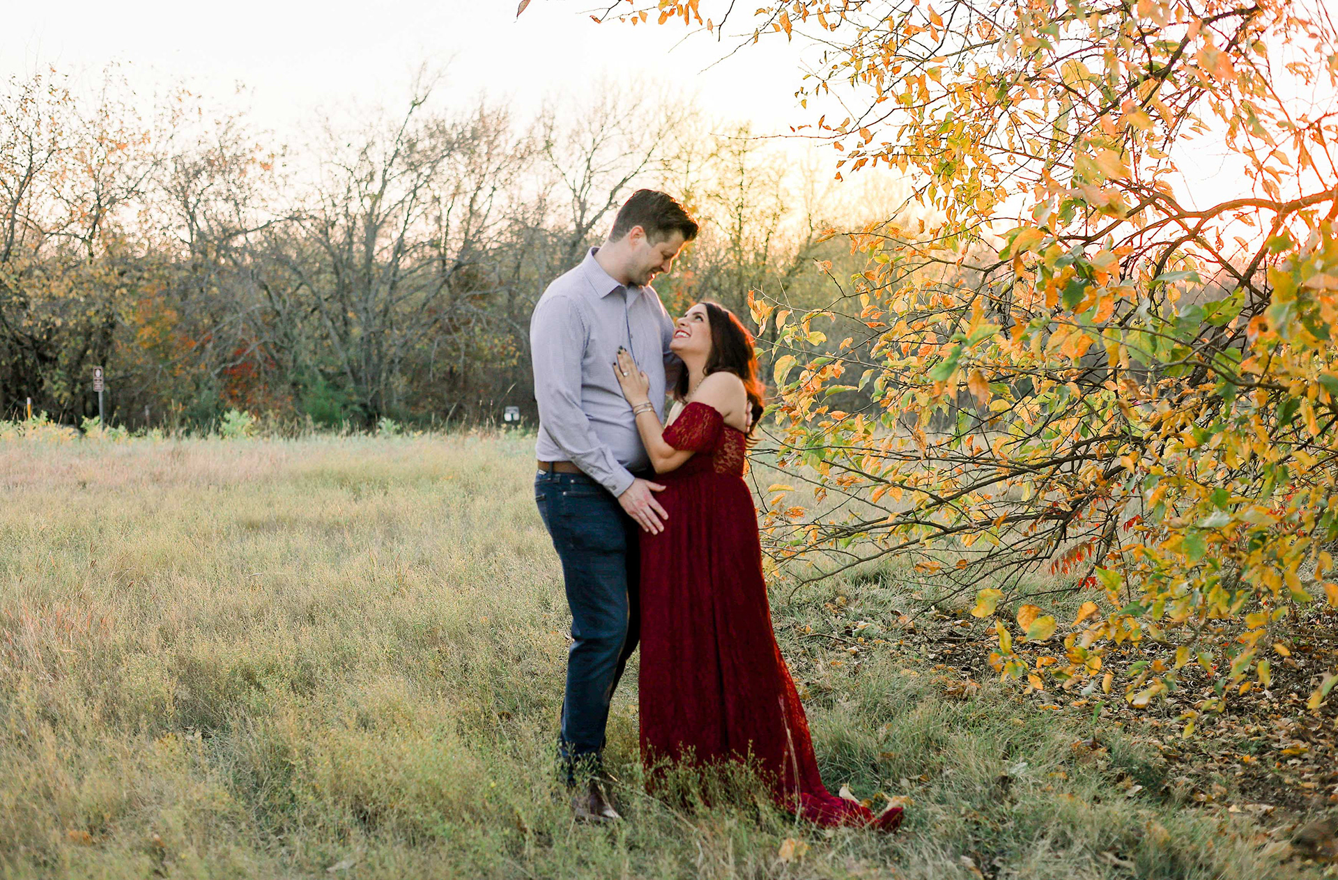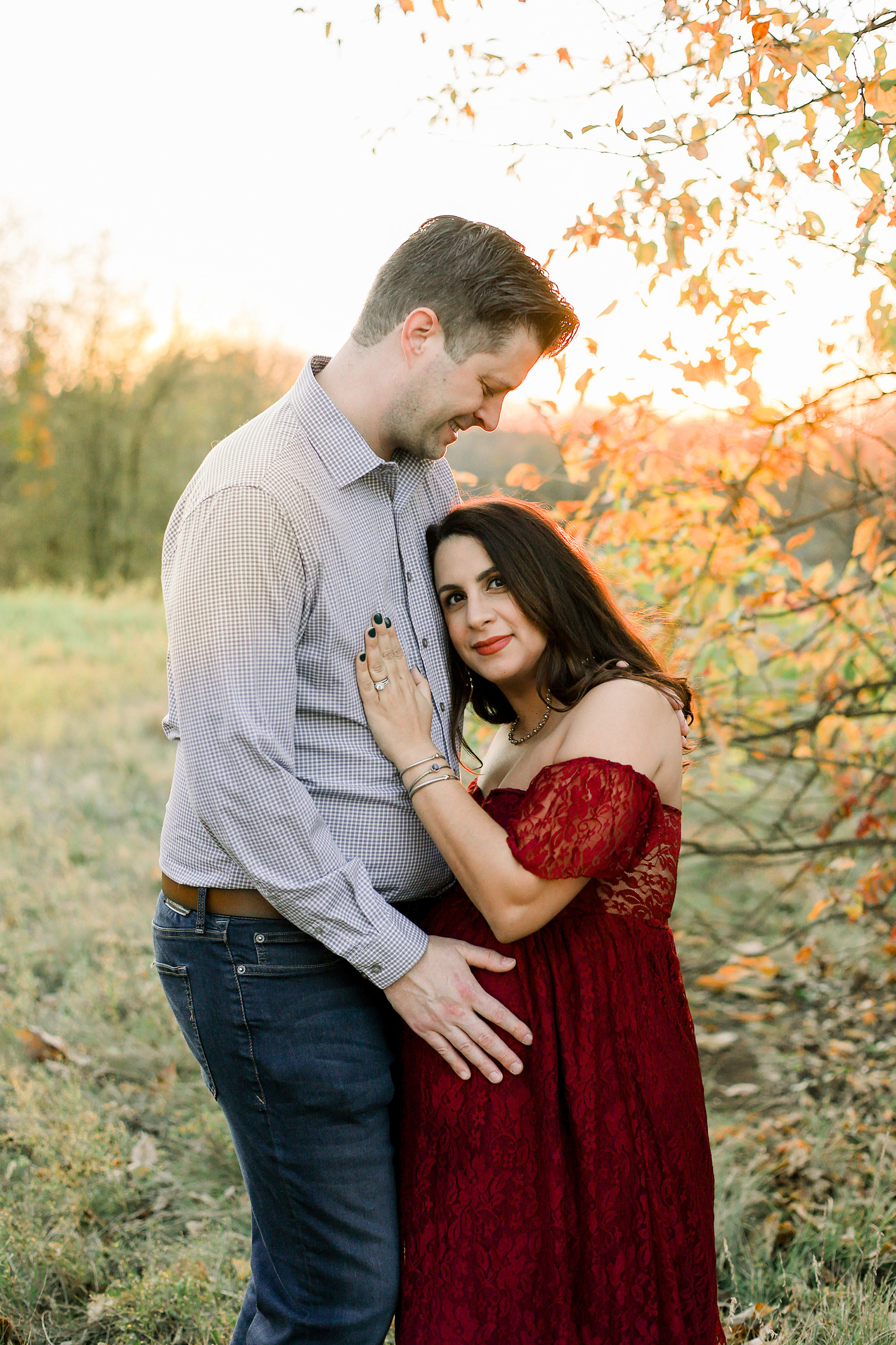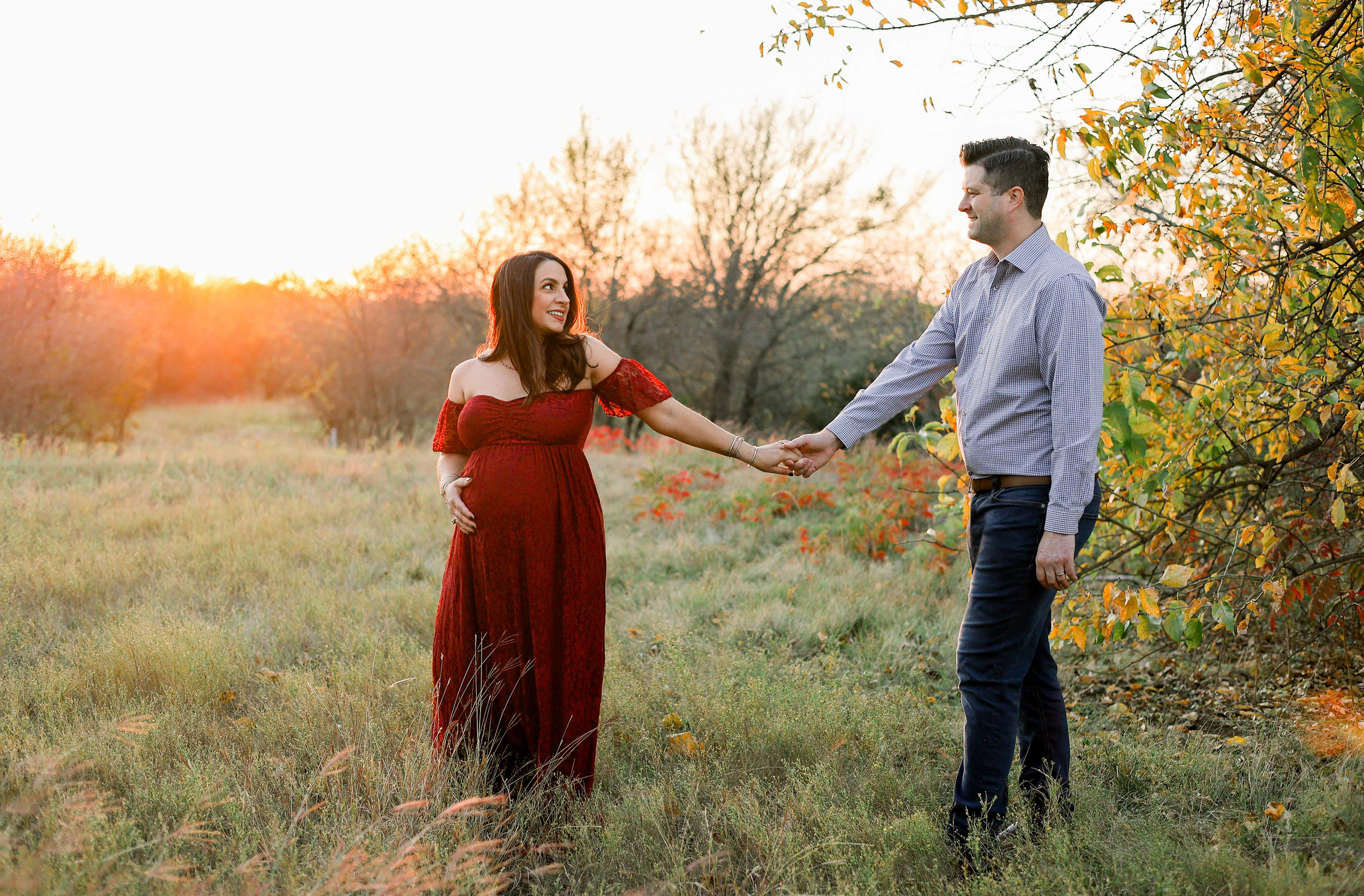 One thing that separates New York where I started my career from Texas is the absolutely gorgeous sunsets. We scheduled maternity session with beautiful couple in one of the most popular photo shoot locations - Arbor Hills in Plano. Weather was incredibly warm for November and we got to see sun with golden warming light and mama with the most beautiful smile
