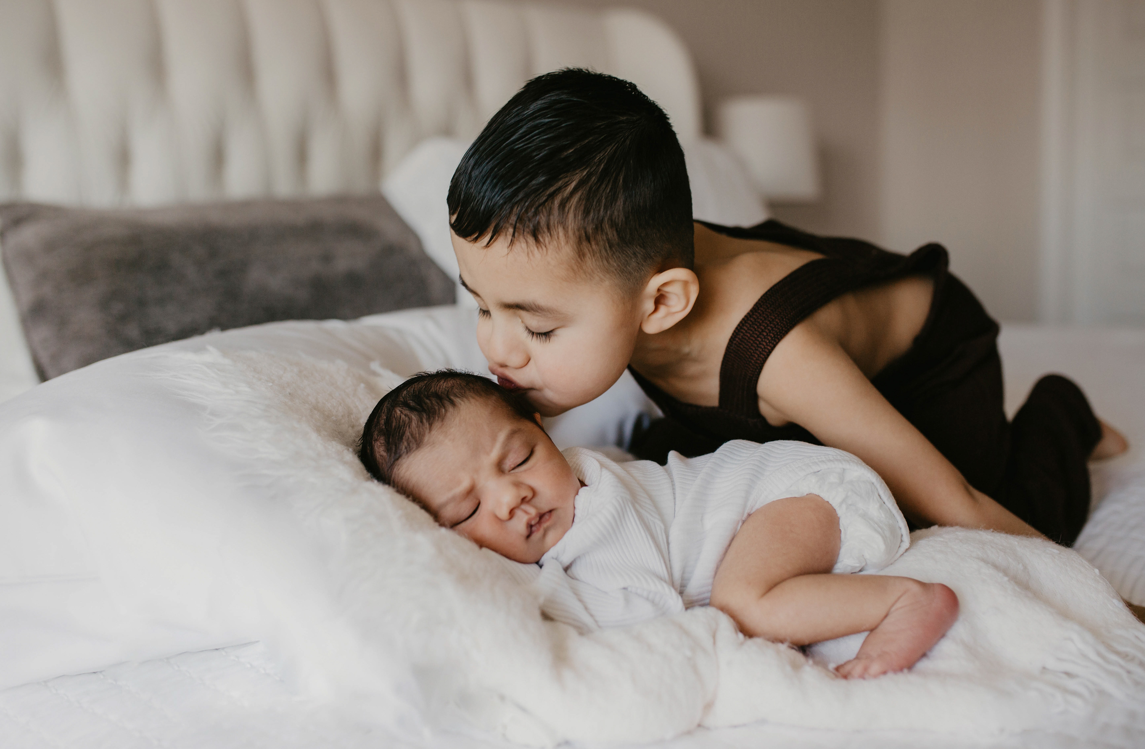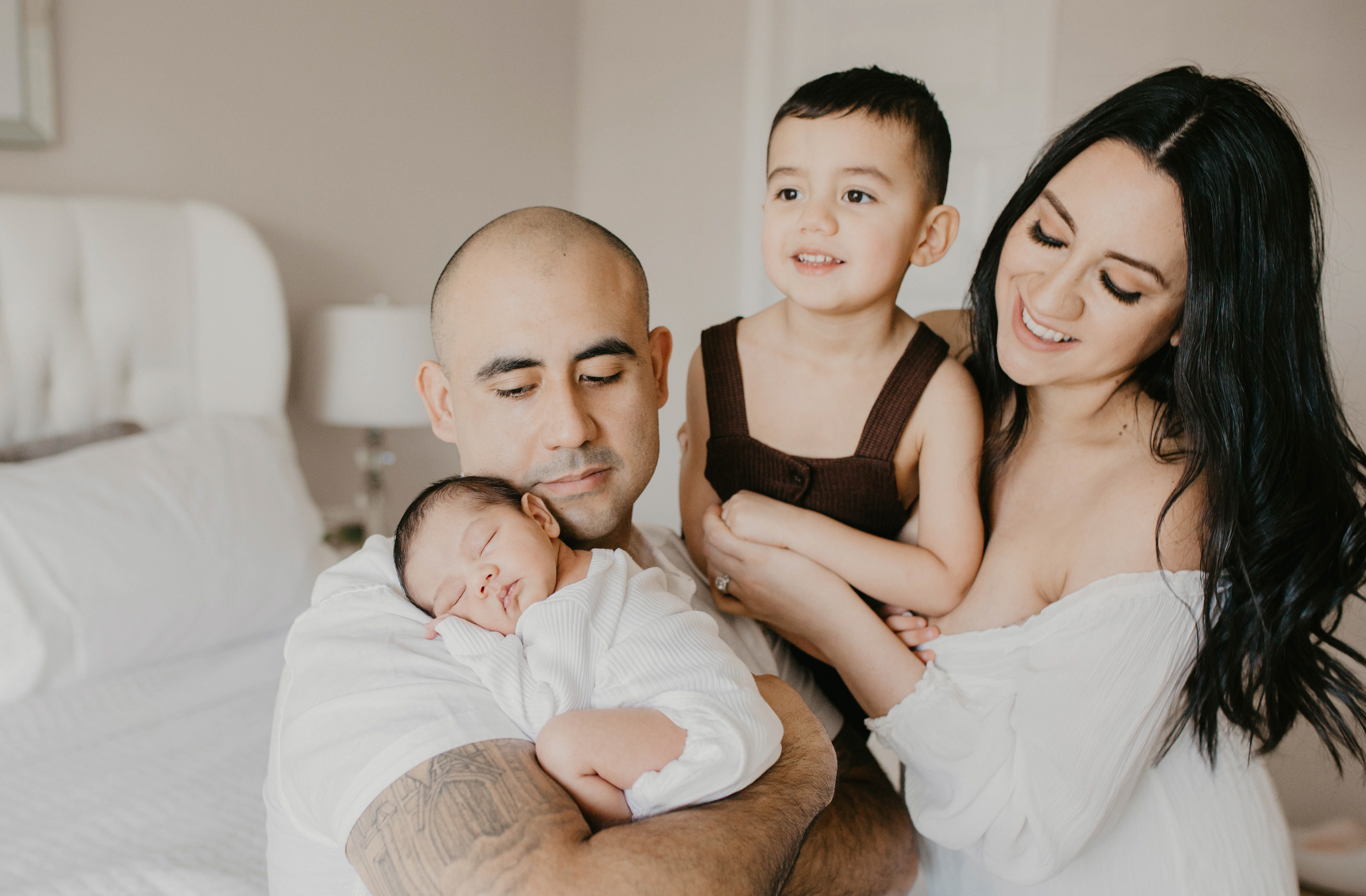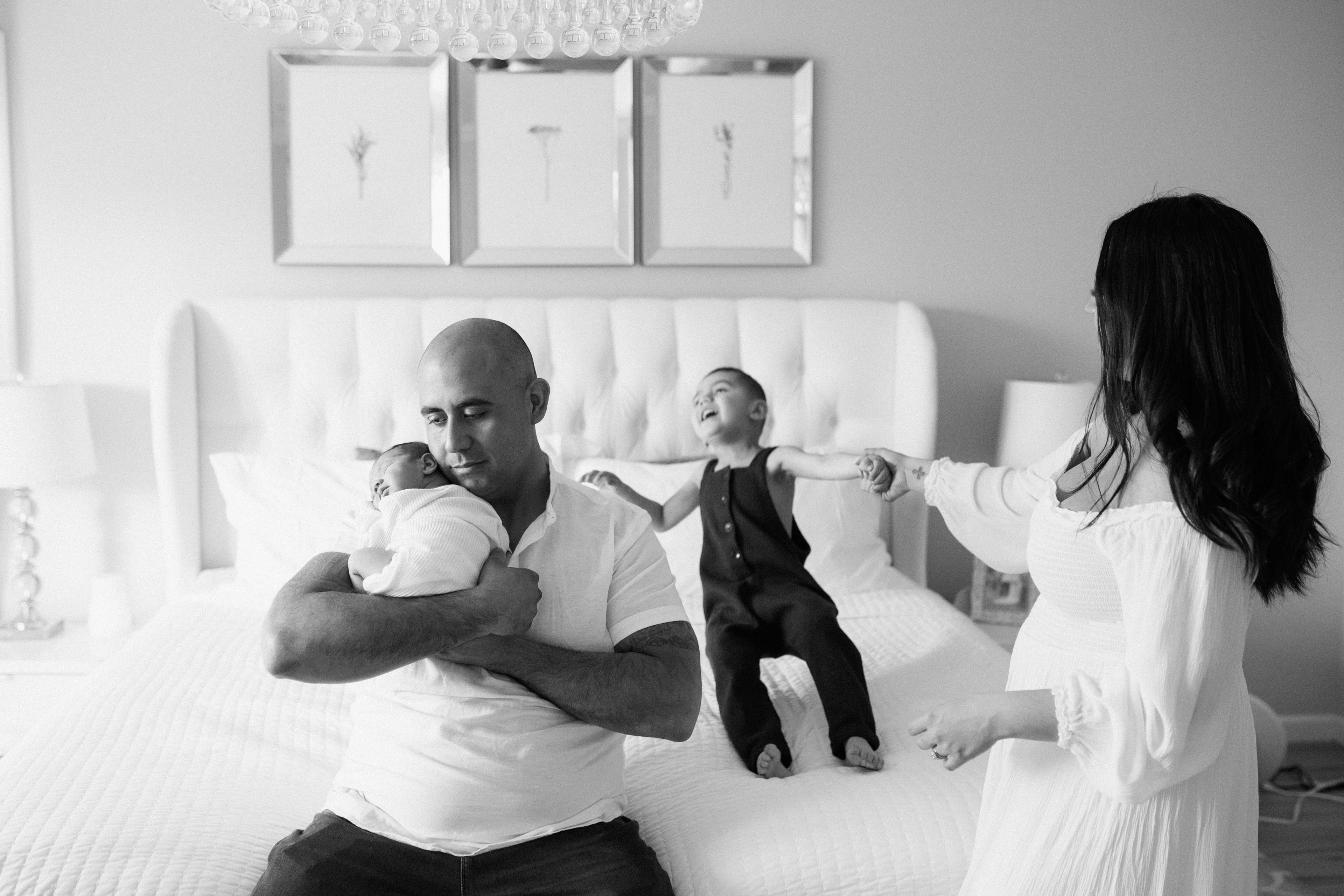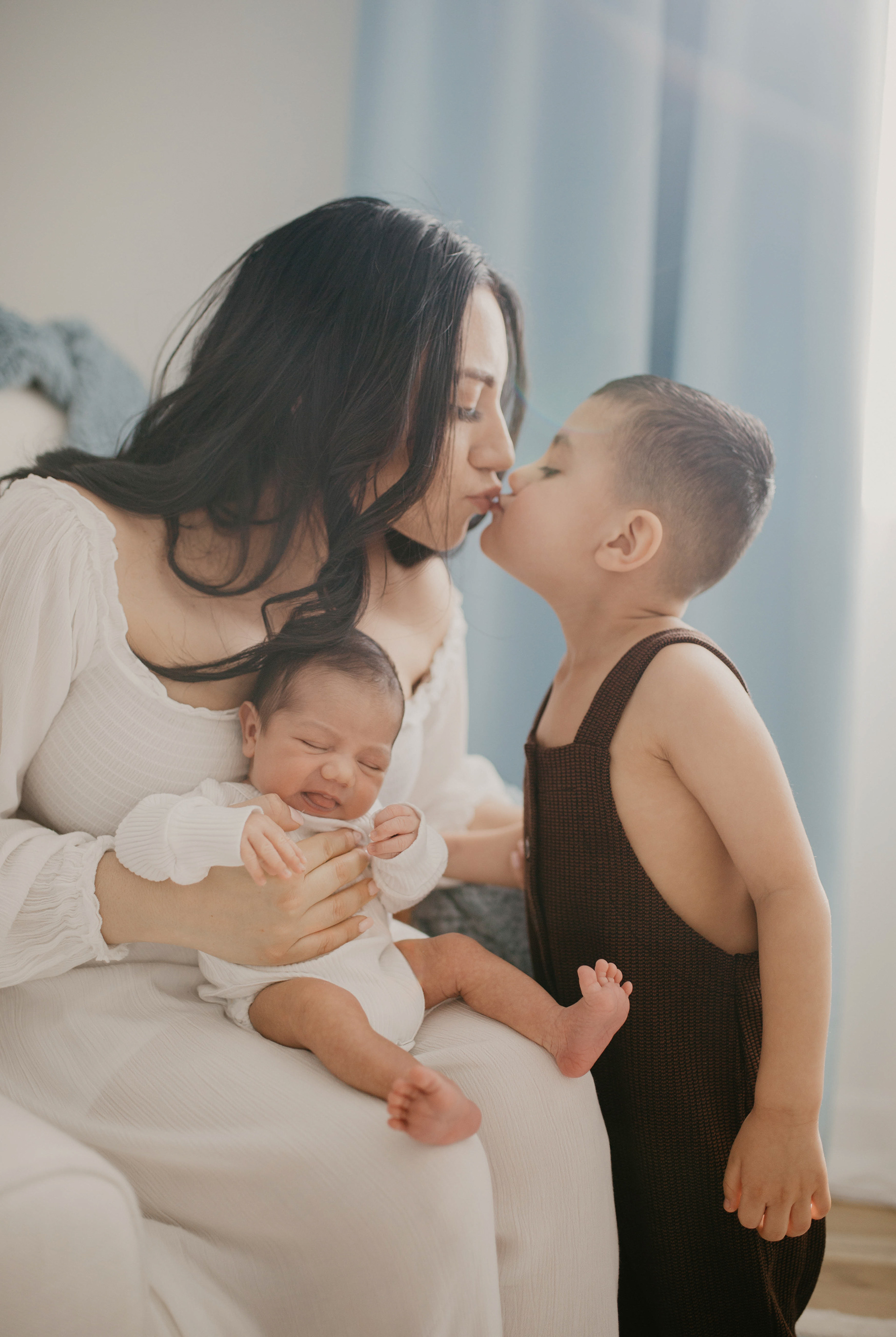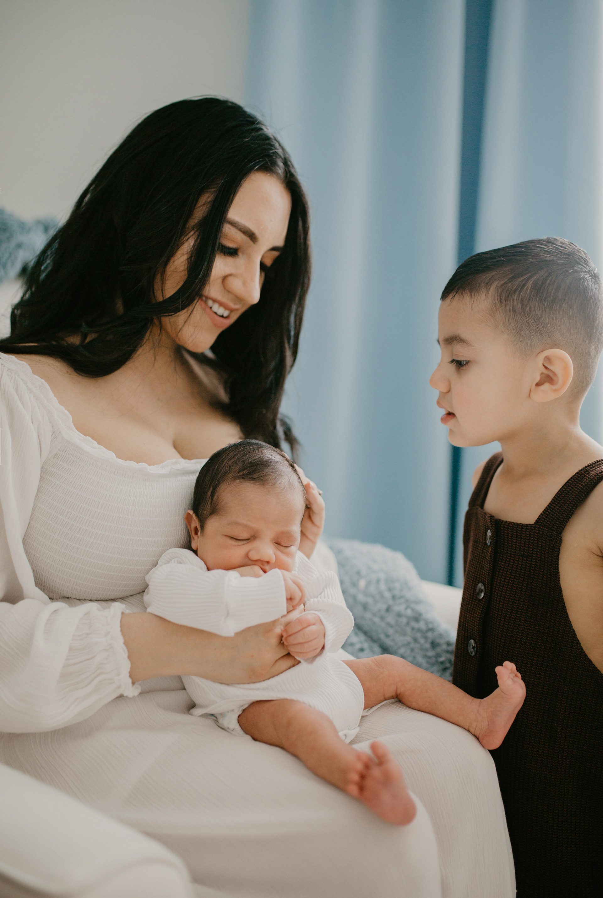 Success of newborn session at home is the right timing and coordination of the outfits for the whole family. Look how gorgeous this mom of two boys. She purchased outfits for both of her babies and beautiful dress for herself. When you are welcoming baby in your family it's a celebration. And its worth the investment. Don't let these moments of your life slip away from you in the daily routine. Make it memorable with professional newborn photography