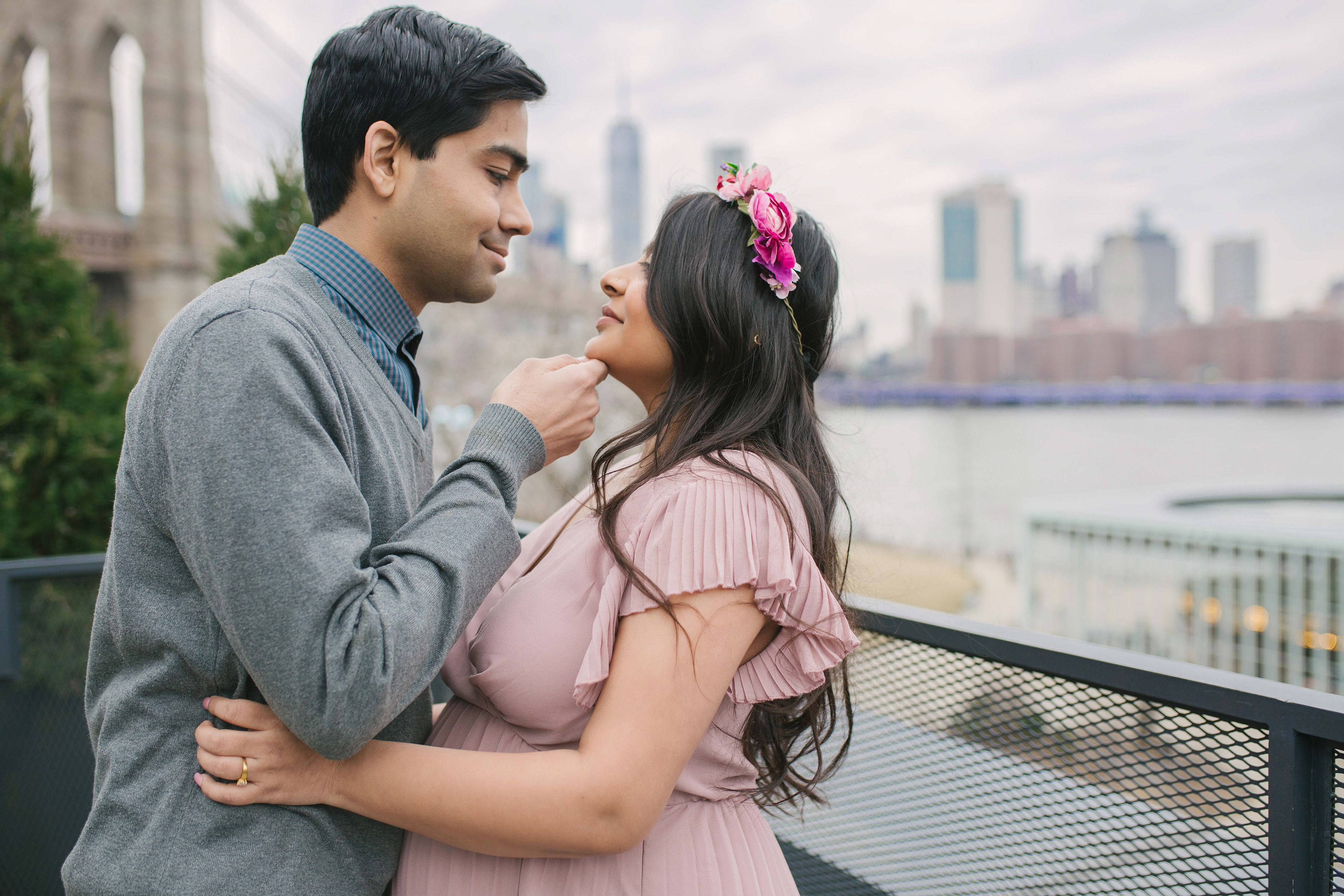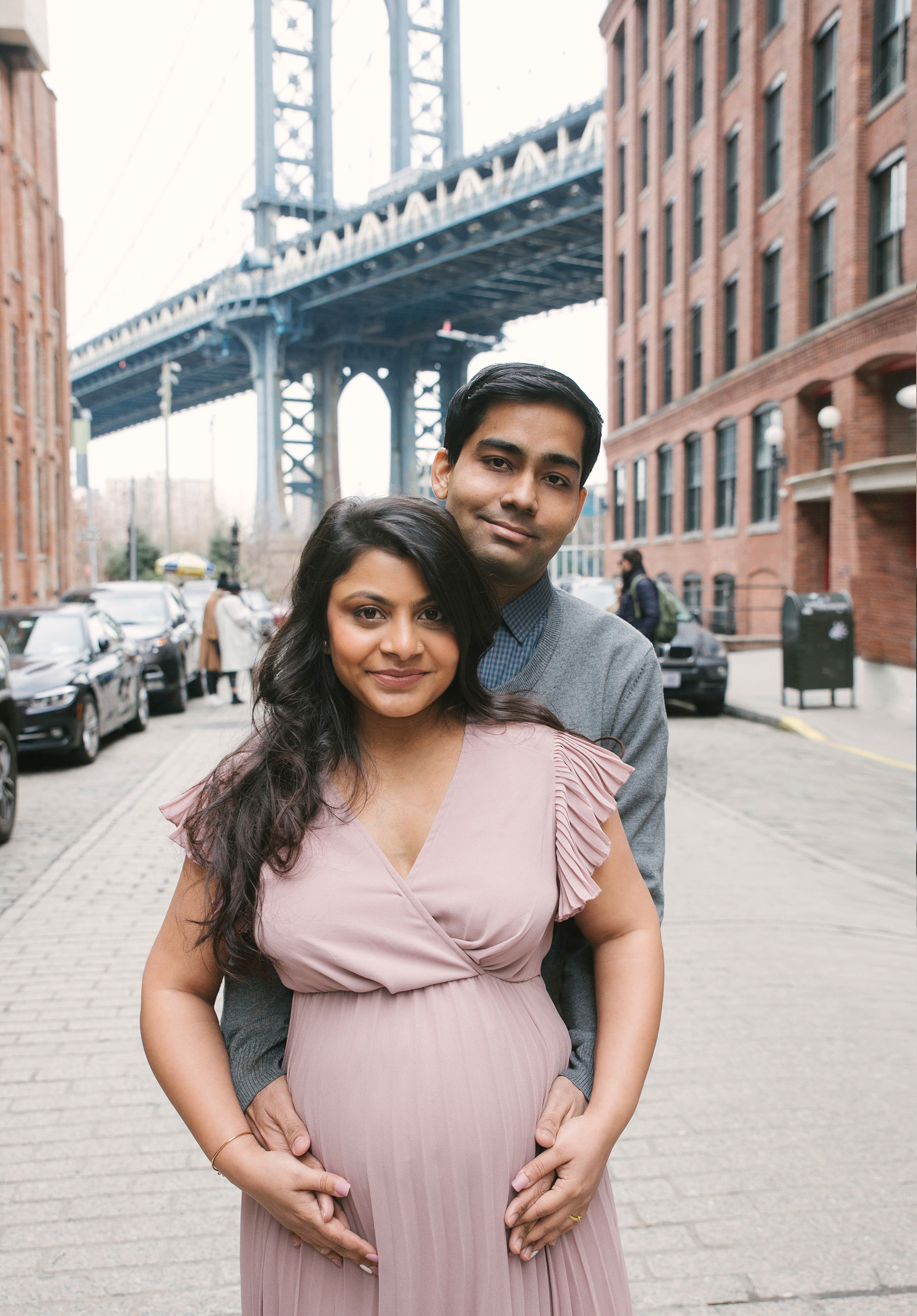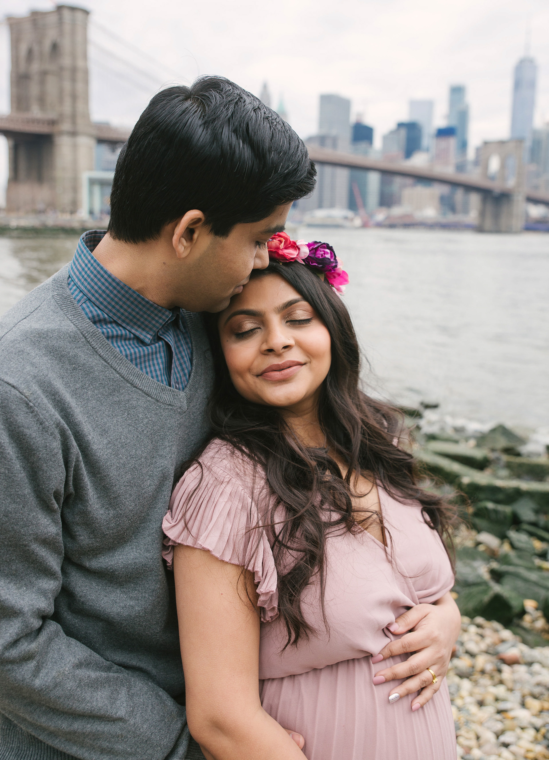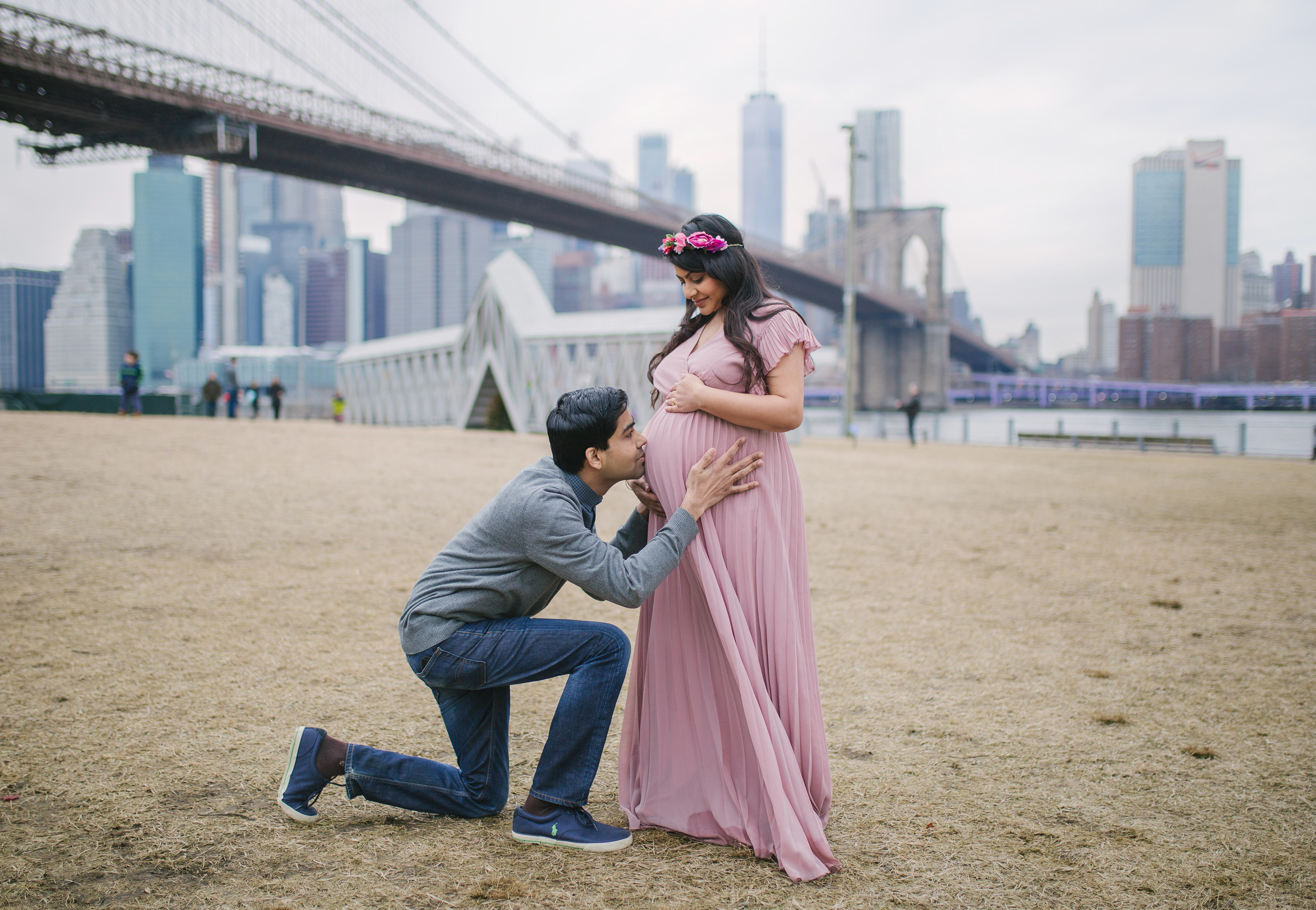 Would you believe me if I tell you this photoshoot was done in the end of February with temperature 40 F outside in a cold afternoon. Before you judge me for bringing that beautiful couple outdoors, I just want to say that Brooklyn Bridge Park allows you to go in and out of the Empire Store building. We stayed warm and more than that - beautiful mommy to be melted hearts of people around with her stunning beauty and gorgeous shining eyes.