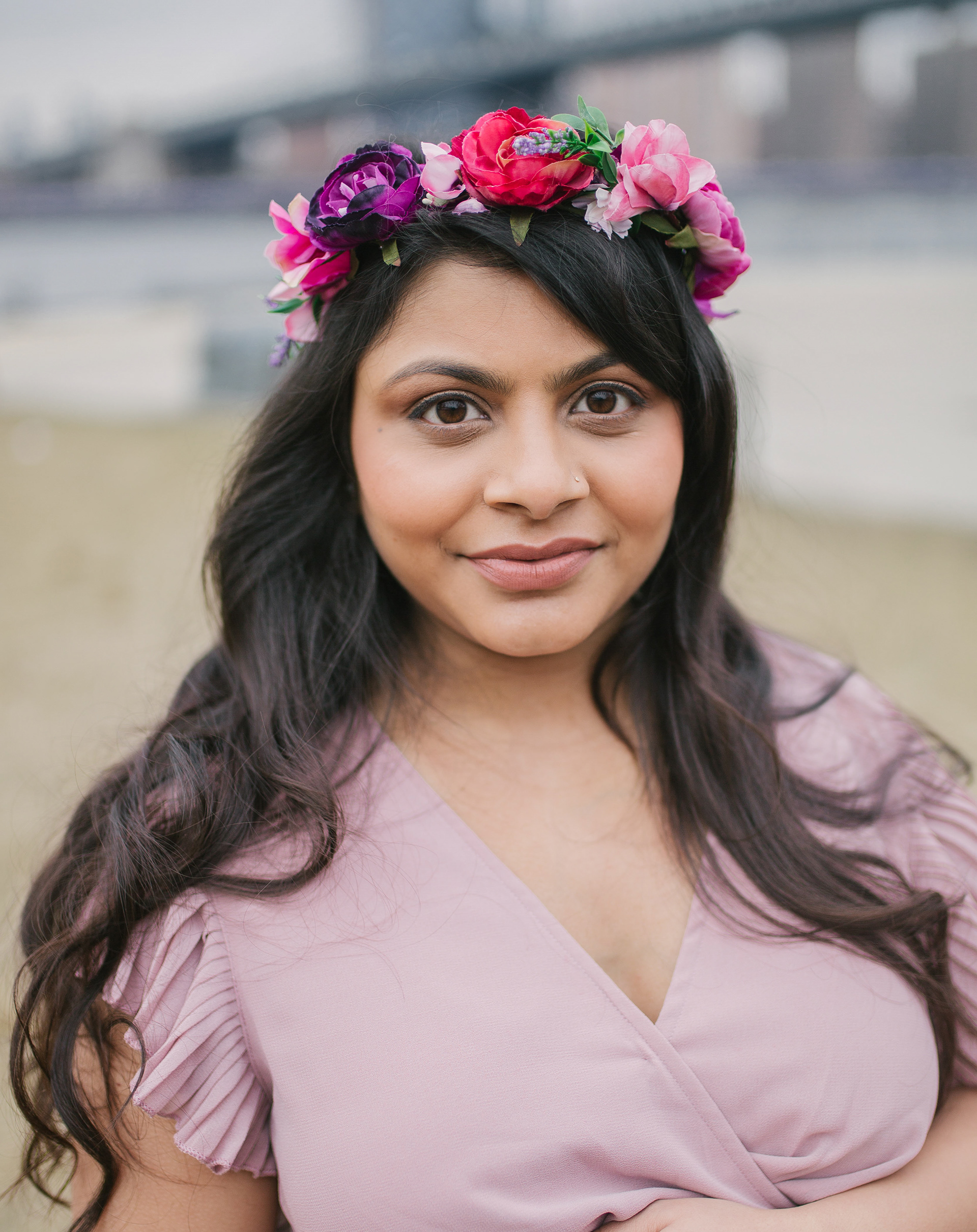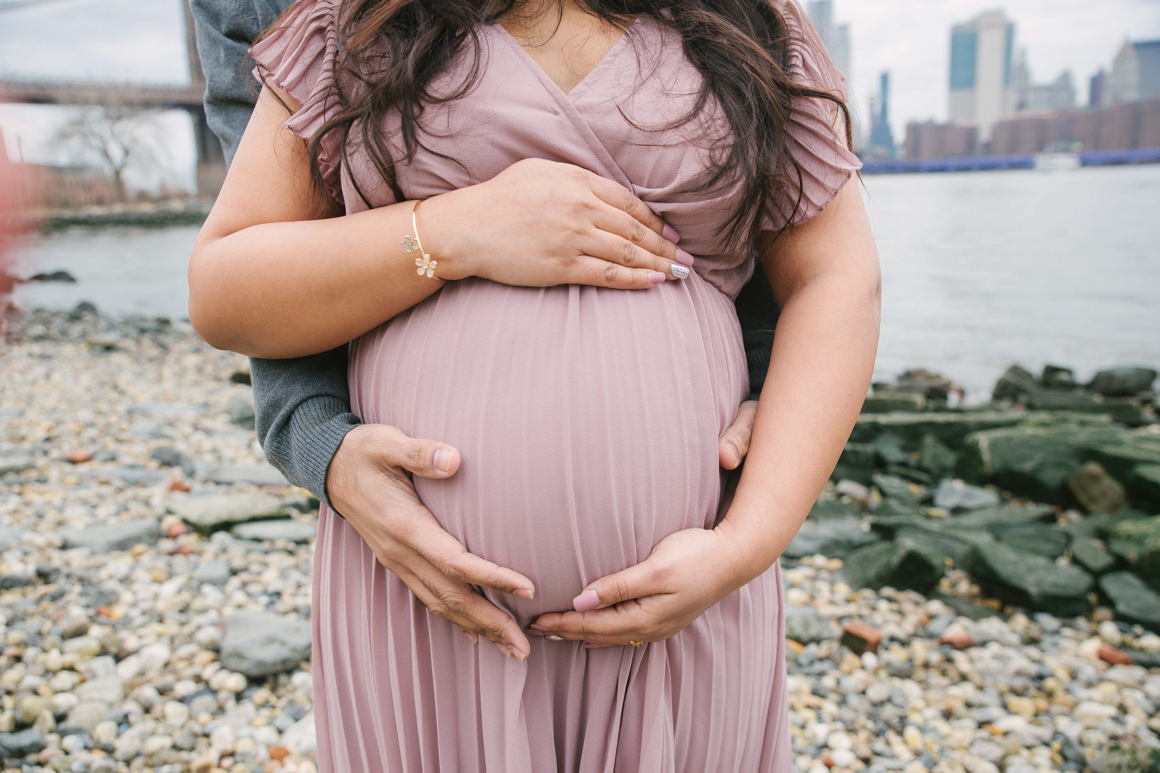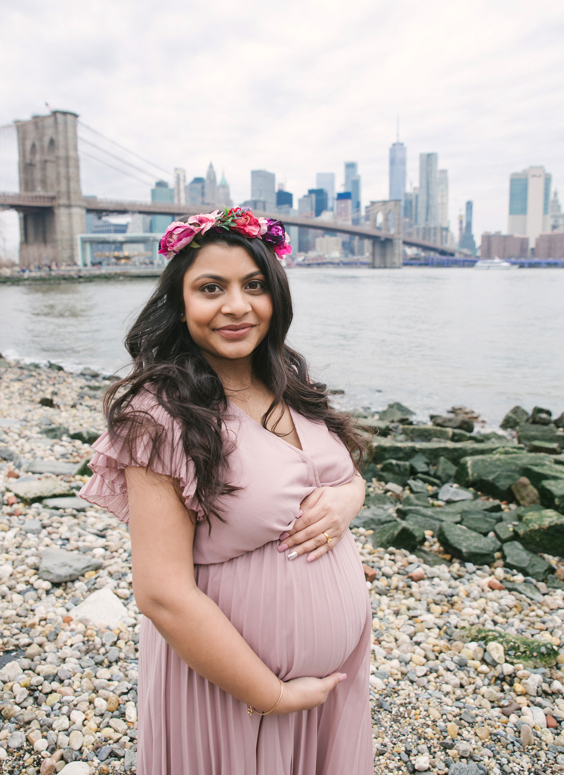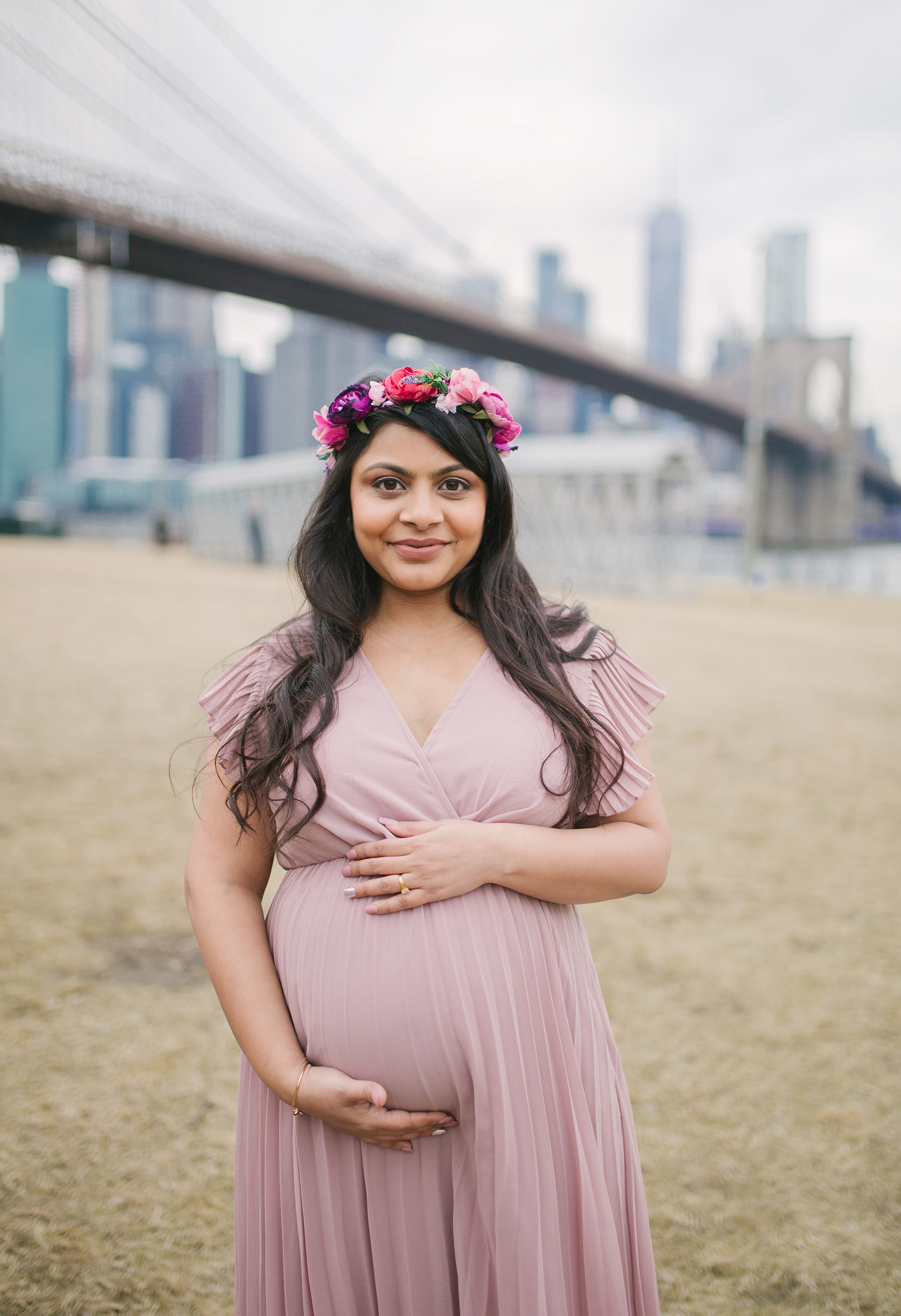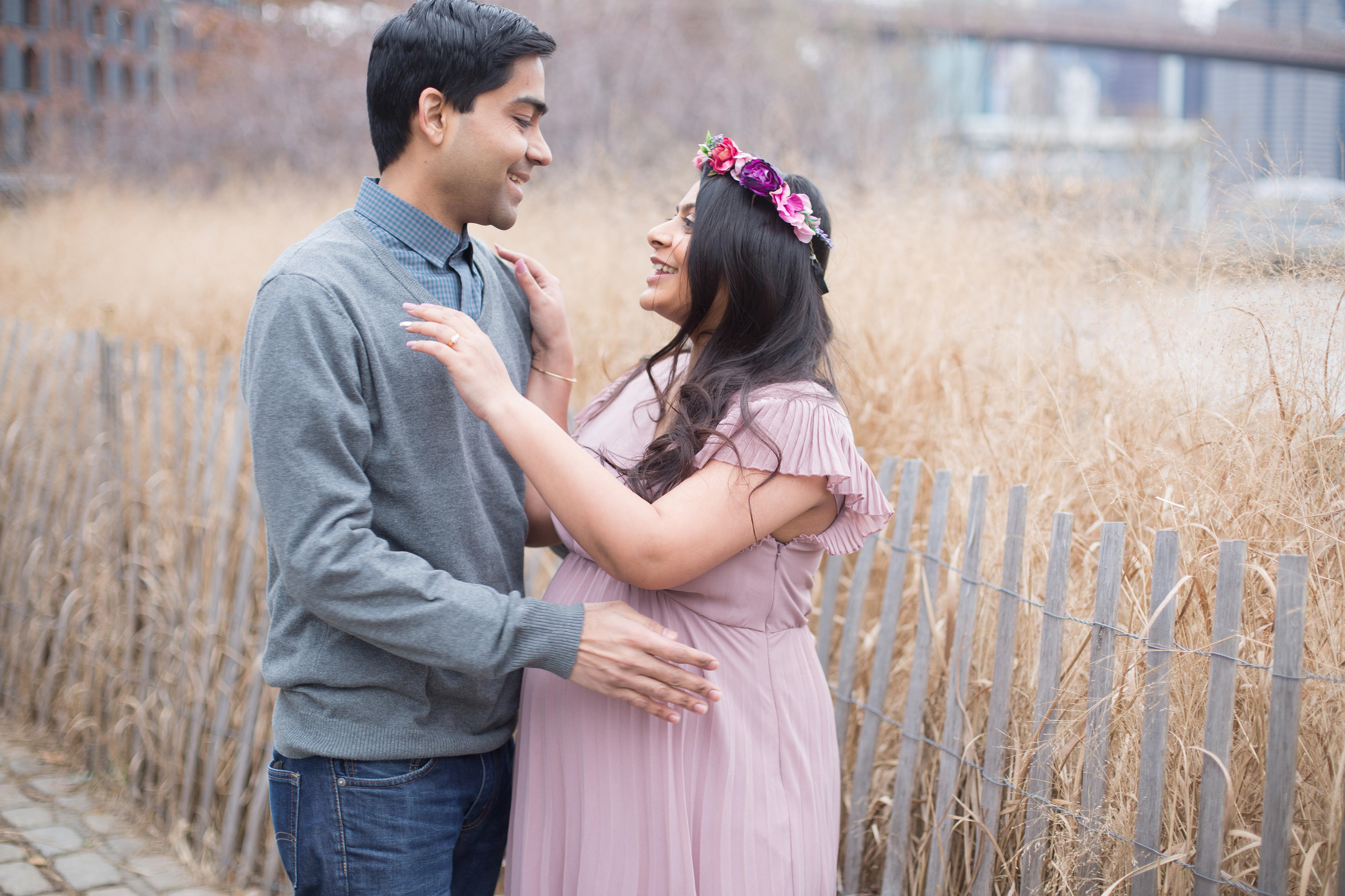 Would you believe me if I tell you this photoshoot was done in the end of February with temperature 40 F outside in a cold afternoon. Before you judge me for bringing that beautiful couple outdoors, I just want to say that Brooklyn Bridge Park allows you to go in and out of the Empire Store building. We stayed warm and more than that - beautiful mommy to be melted hearts of people around with her stunning beauty and gorgeous shining eyes.