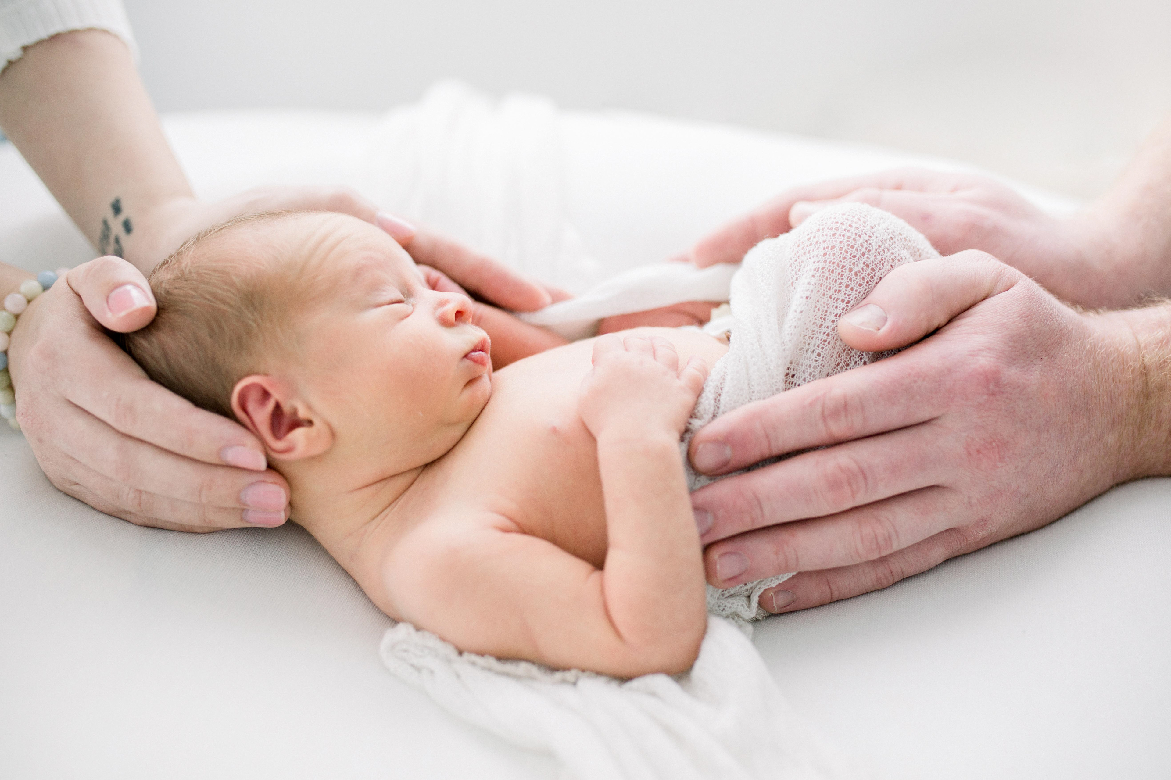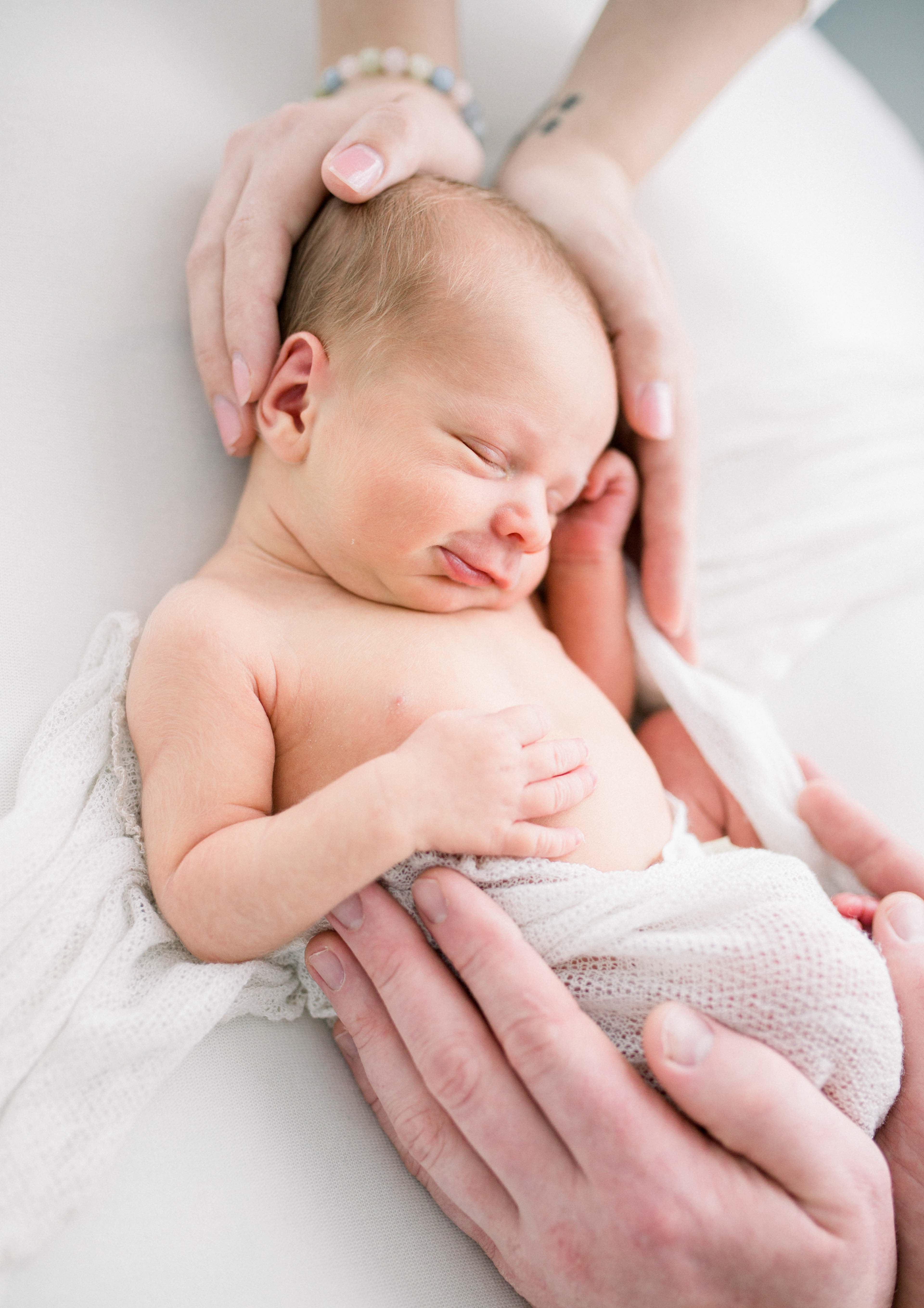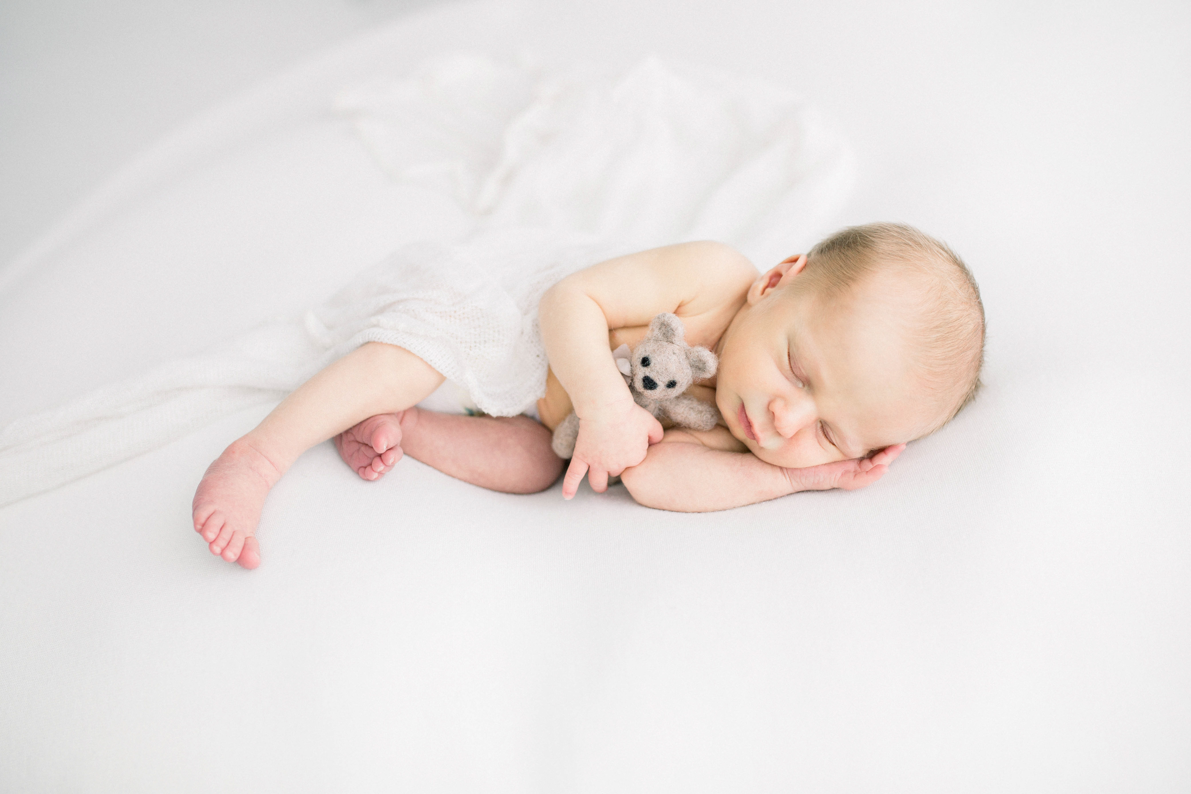 I get asked a lot, what is baby led posing? It is posing baby while allowing them to take control of the session. Its going through the poses while keeping the most important details present, not covering what you want to remember - fuzzy hair, little feet, cute wrinkles on the back and so much more. My style is simplistic and natural, focusing on capturing the beauty of your baby and all their special features.